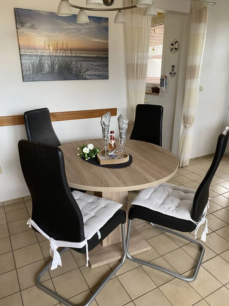 Die Küche ist komplett eingerichtet. 4-Platten-Herd, Mikrowelle, Kaffeemaschine, Eierkocher, Toaster und natürlich entsprechendes Geschirr, Gläser und Besteck für sechs Personen stehen Ihnen zur Verfügung.