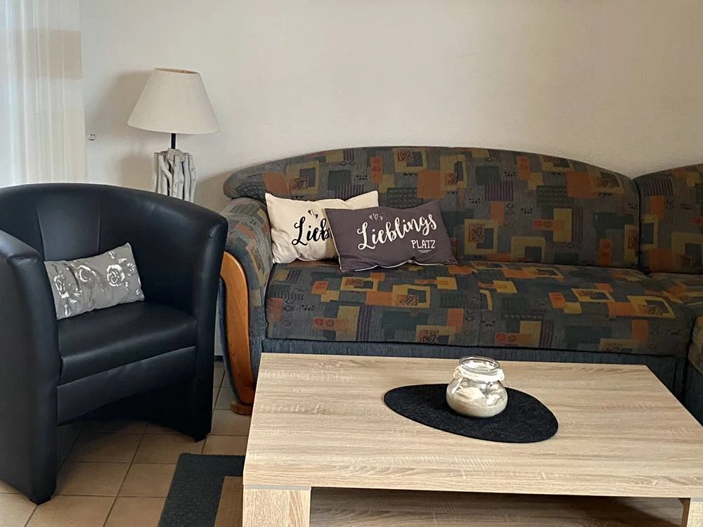 Im Wohnraum finden Sie eine gemütliche Wohnlandschaft vor, die zu einer Schlafgelegenheit von 1,40 m x 2,00 m ausgezogen werden kann.